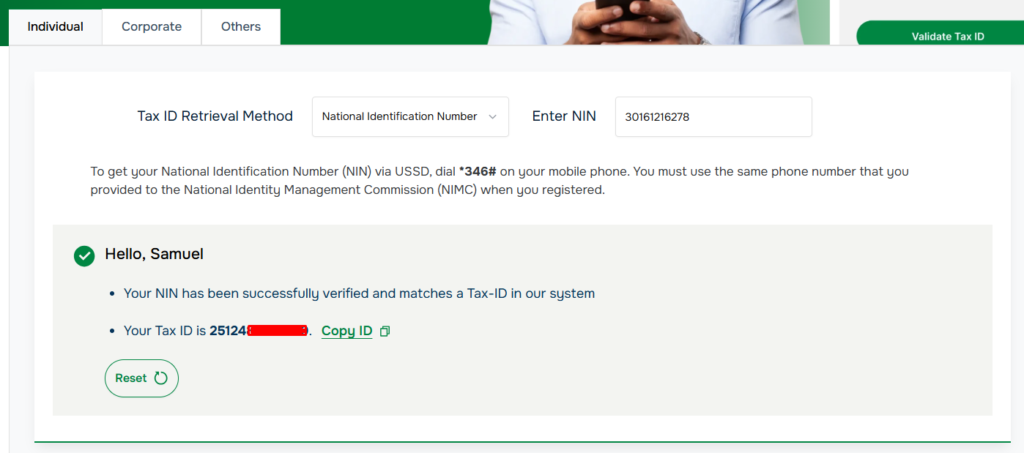 - This Tax ID is now automatically linked to your NIN